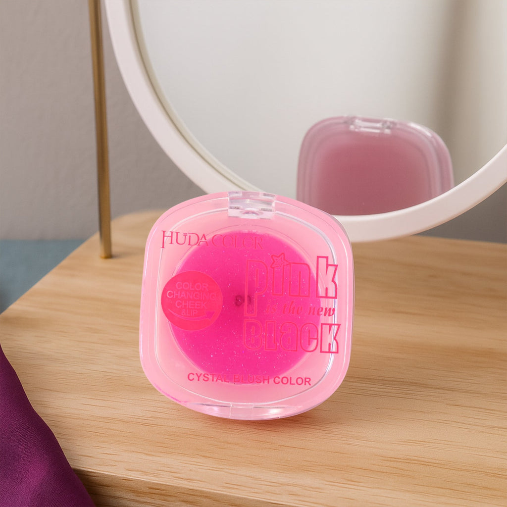 huda color crystal blush, color-changing cheek tint, lip and cheek tint, natural rosy glow blush,long-lasting blush finish, cute compact blush case, daily makeup blush,versatile cheek and lip tint, buildable blush tint, radiant finish blush, portable makeup blush, gel texture blush