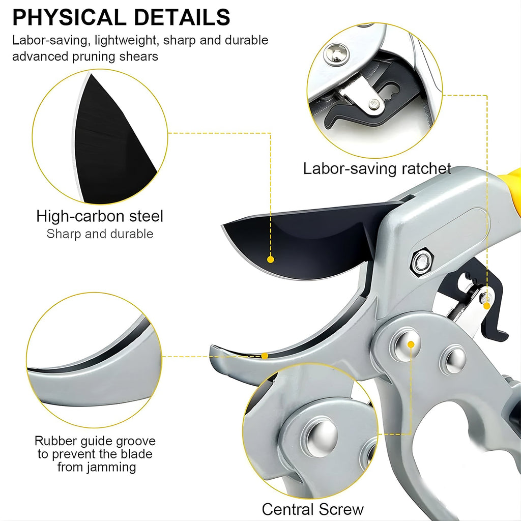 • MUST HAVE GARDENING TOOLS – Ideal for people of all ages, these ratcheting pruning shears (heavy-duty) are essential gardening tools for weak hands, elderly or people with arthritis! Why should only mom or dad tend to the garden? PAIN-FREE PRUNING – Don’t let your aching joints and weak digits stop you from pruning away dead branches, overgrowth, or unsightly weeds! Thus saving you both time and energy while pruning your plants!