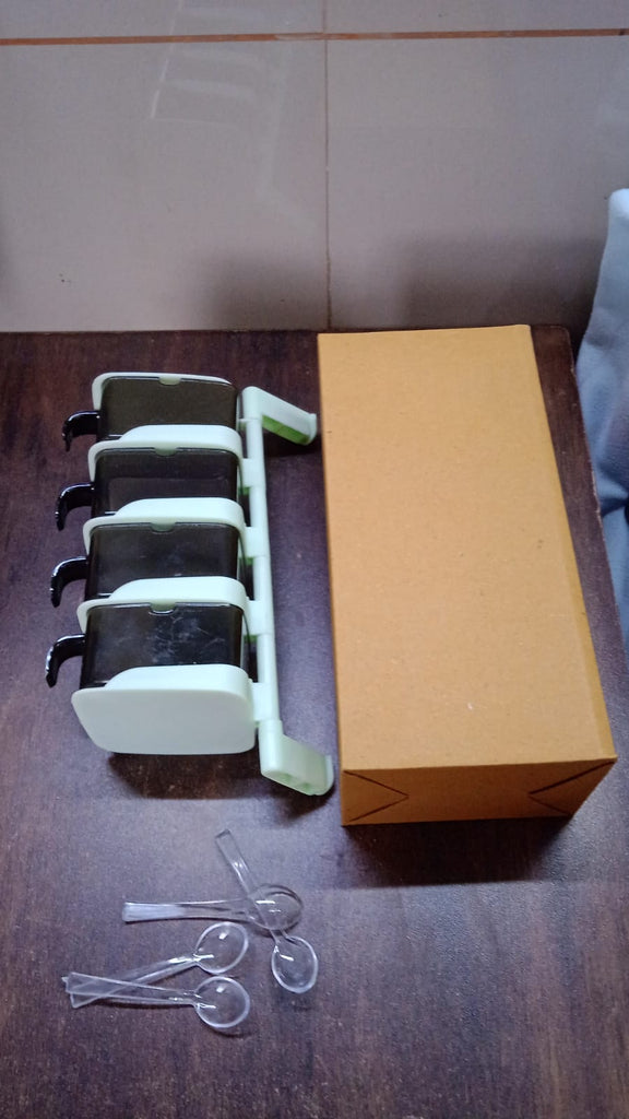 Rotating Spice Jars Vertical Rotatable Seasoning Box Kitchen Tools Seasoning Rack Rotatable Spice Pots Condiment Pots for Pantry Dining Room, 4 Section / Tier With 4 Spoon (1 Set)